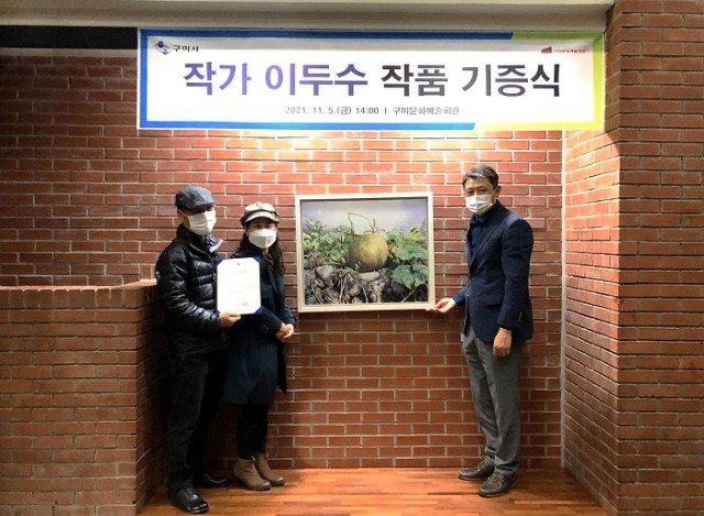 (전국= KTN) 김도형 기자= 구미시(시장 장세용)는 11월 5일 구미문화예술회관 휴게홀에서 이두수 작가의 작품 기증식을 개최했다.