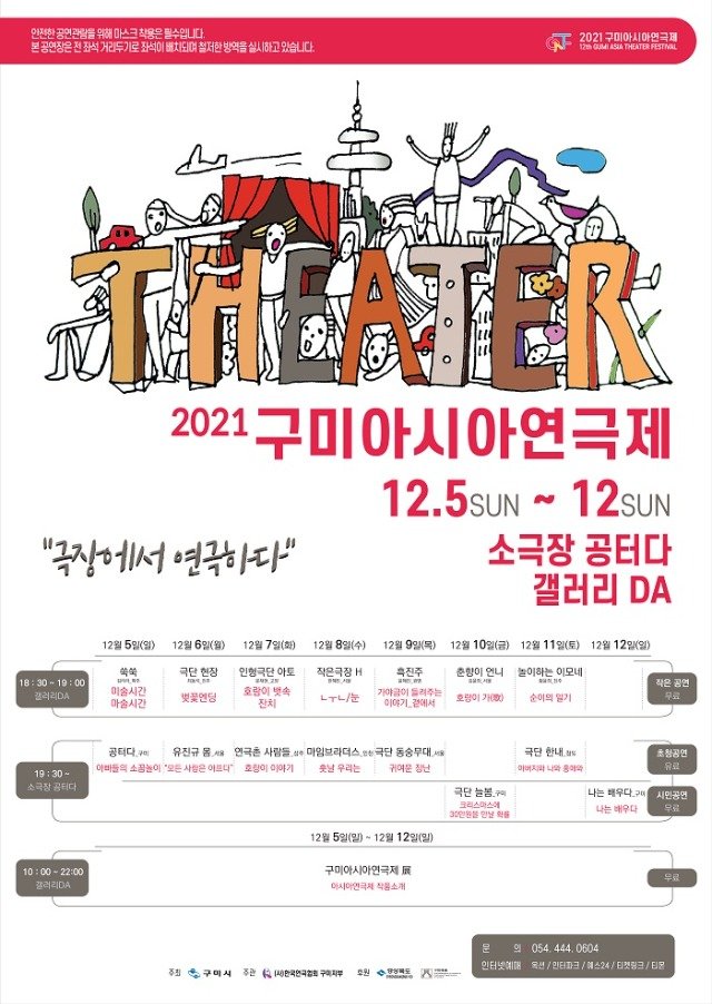 구미시(시장 장세용)는 12월 5일부터 12월 12일까지 소극장공터다에서 (사)한국연극협회 구미지부(대표 김용원) 주관으로 2021 구미아시아연극제를 개최한다.