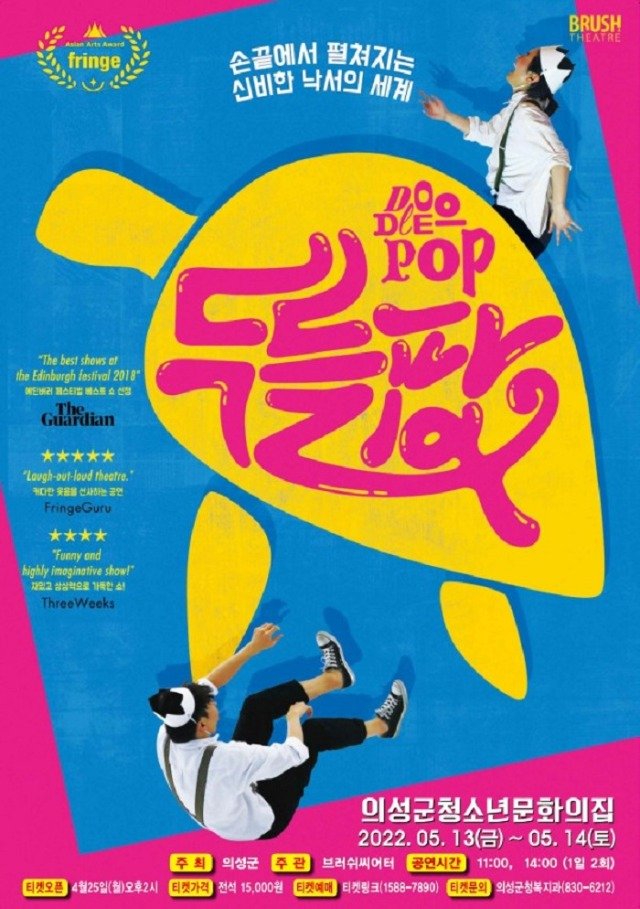 (전국= KTN) 김도형 기자= 의성군은 관람평점 9.9점, 주·월간 랭킹 1위의 명성을 떨치는 매직드로잉 가족극 ‘두들팝’을 오는 13일과 14일 2일간 총 4회에 걸쳐 의성군청소년문화의집 공연장에서 선보인다고 밝혔다.