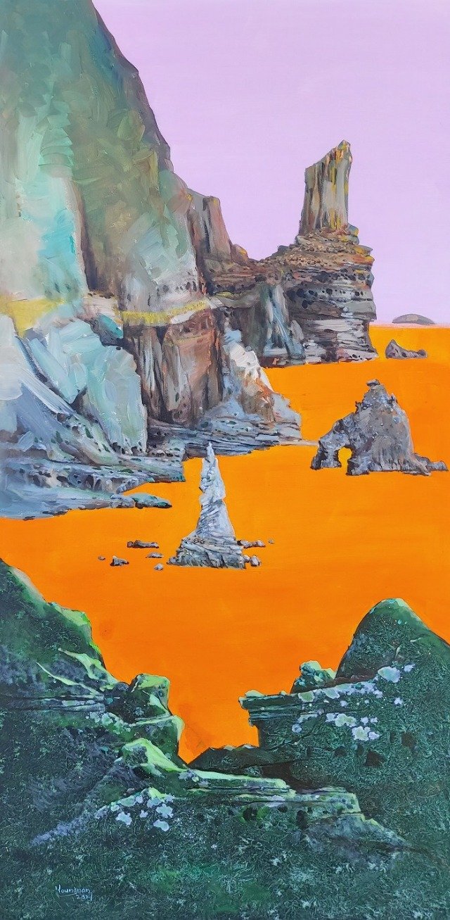 독도 탐사하며 그려낸 수묵화·유화전시, 화가 퍼포먼스 진행