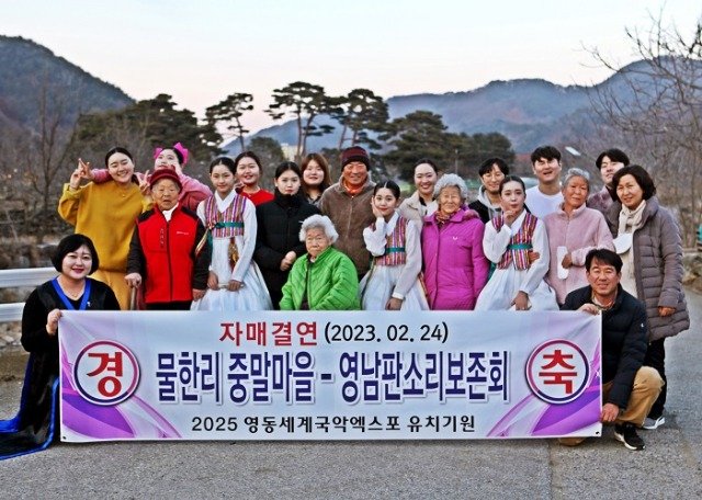 협약식을 주도한 손현권 중말마을 반장과 박병훈 노인회장, 이경배 임업후계자 및 주민 등은 상호 발전을 위해 영동세계국악엑스포 유치에 힘을 모을 수 있도록 영남판소리보존회에 당부했다. 이에 영남판소리보존회는 정정미 이사장은 “2025영동세계국악엑스포 유치를 위해 전국의 100만 국악인과 함께 하겠다.”며 “5월 가정의달 물한계곡 사계절야영장과 영동휴양소 등에서 대단위행사를 준비하겠다.”고 밝혔다.