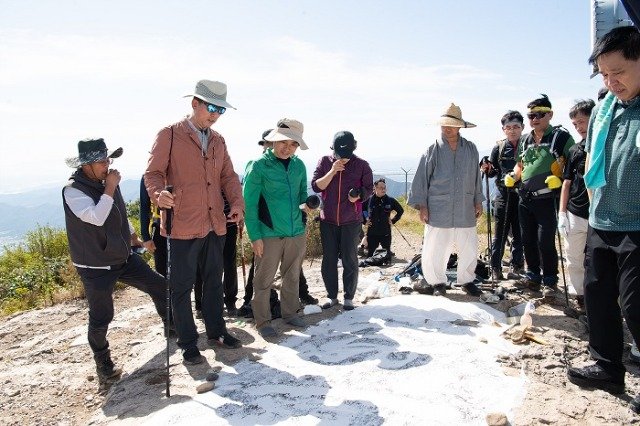 (전국= KTN) 김도형 기자= 김장호 시장을 비롯한 시청 직원들은 최근 발견된 고산 황기로 선생의 글씨로 알려진 후망대(堠望臺)를 보기 위해 금오산 등반에 나섰다.