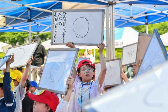 명랑골든벨은 초·중학생과 학부모 300여 명이 참여한 가운데 아이·어른 모두 즐거운 가족 축제의 장으로 펼쳐졌다.