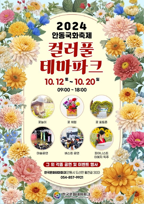 (전국= KTN) 김성원 기자= 안동시 도산면에 위치한 한국문화테마파크(이하 테마파크)에서 가을의 정취를 만끽할 수 있는 꽃축제, ‘컬러풀 테마파크’ 행사가 오는 10월 12일(토)부터 10월 20일(일)까지 개최된다.