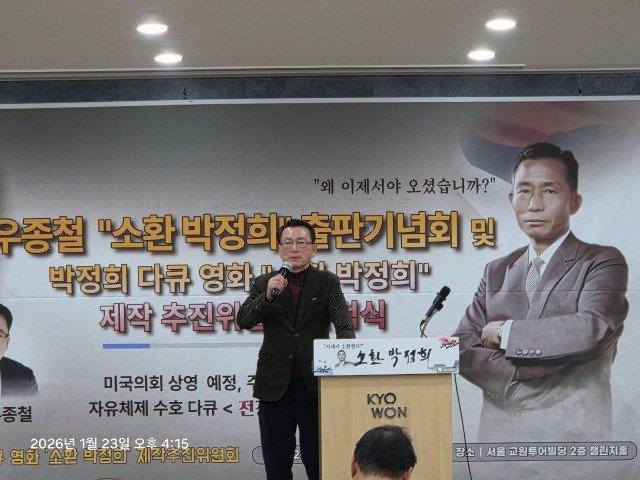 [한국유통신문= 김도형 기] 박정희정신연구소(소장 우종철)는 지난 23일(금), 서울 종로 교원투어빌딩 2층 챌린지홀에서 우종철 소장의 저서 ‘소환 박정희’ 출판기념회와 동명의 다큐멘터리 영화 제작 추진위원회 발족식을 성황리에 개최했다고 밝혔다.