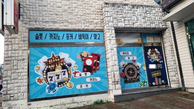 업소 외부 간판에는 ‘슬롯·카지노·포커·맞고’ 등 사행적 성격이 강한 문구와 그래픽이 노출돼 있다. 슬롯머신 그림이나 카지노 룰렛, ‘BIG WIN 777’ 등 이미지 역시 단순 PC방이 아닌 성인용 게임물을 연상케 한다.