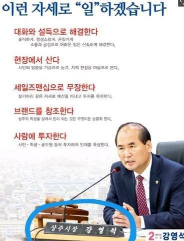 조작 합성으로 문제가 된 강후보의 공보물(사진 참언론 상주뉴스)