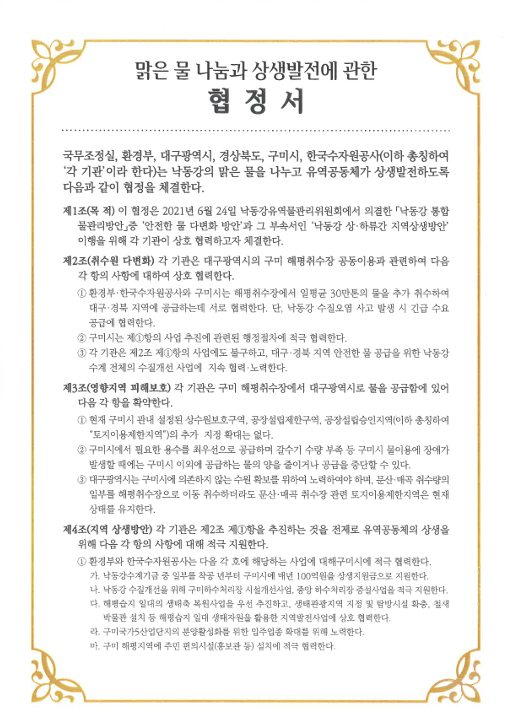 2022년 4월 4일 체결된 ‘맑은 물 나눔과 상생발전에 관한 협정서’