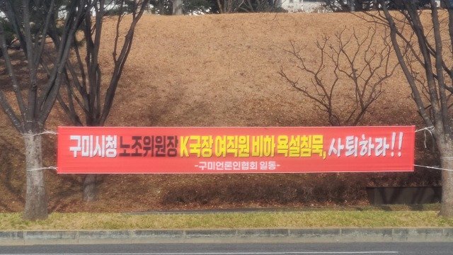 앞서 구미언론인협회는 구미시청 인근에 “구미시청 노조위원장 K국장 여직원 비하 욕설 침묵, 사퇴하라!!”라는 문구가 적힌 현수막을 게시하며 해당 국장의 발언이 공직 윤리와 성평등 가치를 심각하게 훼손했다고 비판했다.