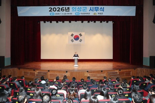 이날 시무식은 공무원 헌장 낭독으로 공직자로서의 사명과 책임을 되새기는 순서로 시작됐으며, 2026년 새롭게 도약하는 의성군의 변화와 발전 방향을 함께 모색하는 시간으로 이어졌다.