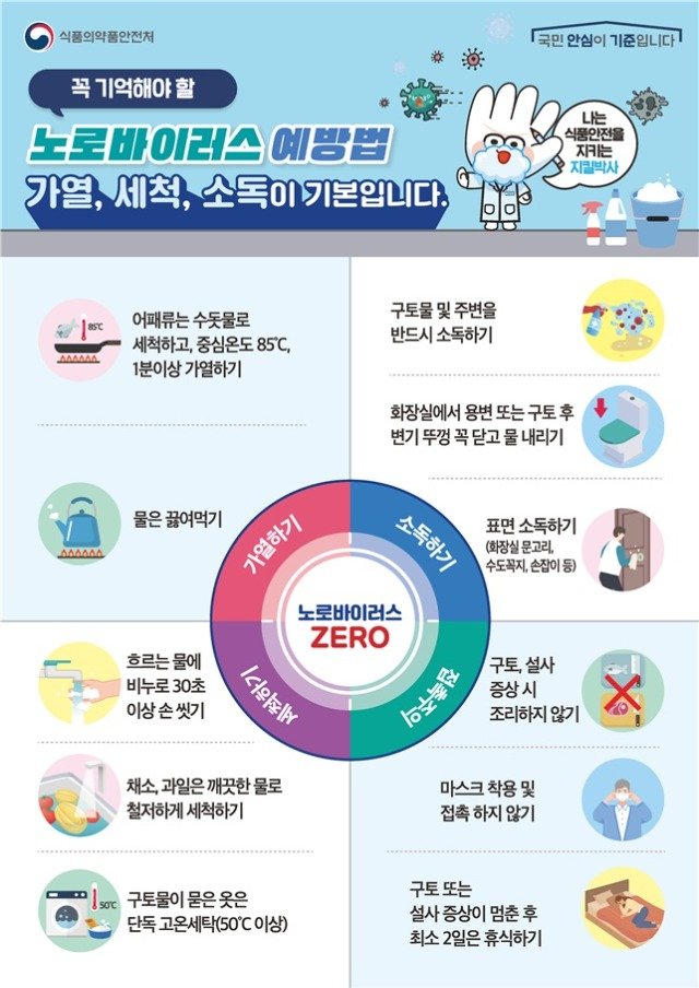 또한 겨울철 식중독 발생의 주요 원인인 노로바이러스 예방을 위해 손씻기 등 개인위생 관리 점검·교육, 노로바이러스 의심환자 발생 시 행동요령 등에 대한 안내·홍보 등도 병행할 예정이다.