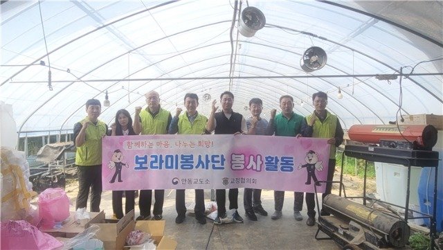 [한국유통신문= 김도형 기자] 안동교도소(소장 윤영주)는 9월 29일 지역 농촌 일손 부족 문제를 해소하고 수용자의 건전한 사회 복귀를 지원하기 위해 농촌 일손돕기 봉사활동을 시행했다. 이번 활동에는 교도소 보라미봉사단 수형자와 교정협의회 회원, 농협 관계자 등 총 20여 명이 참여했다.