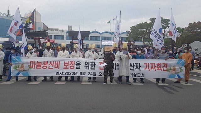 이날 마늘생산자 농민들은 정부의 수급 정책 실패로 인한 마늘값 폭락을 규탄하고 생산비 보장을 위한 대책 마련을 촉구하는 성명을 발표했다.