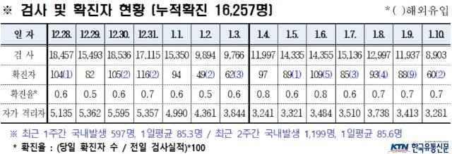 (전국= KTN) 김도형 기자= 경상북도에서는 1월 10일(월) 13개 시·군(시 8, 군 5)에서 코로나19 확진자 국내감염 58명, 해외감염 2명이 신규 발생했다.
