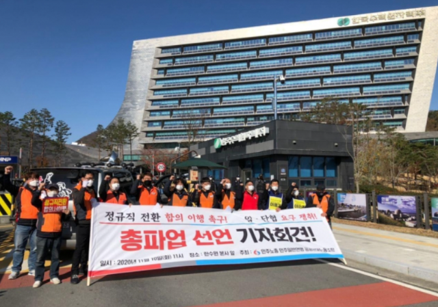 2020년 11월 10일 민주노총 민주일반연맹 공공연대노동조합 발전분과위원회 경북 경주 한국수력원자력(한수원) 본사 앞 기자회견 현장