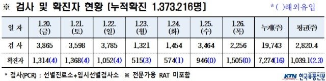 (전국= KTN) 김도형 기자= 경상북도에서는 1월 26일(목) 0시 기준 22개 시·군(시 10, 군 12)에서 코로나19 확진자 국내감염 1,505명, 국외감염 0명이 신규 발생하였다.
