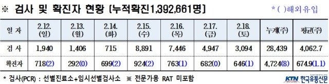 경북도내, 2023년 2월 18일 0시 기준 코로나19 확진자 646명(국내 645, 국외 1 ) 발생
