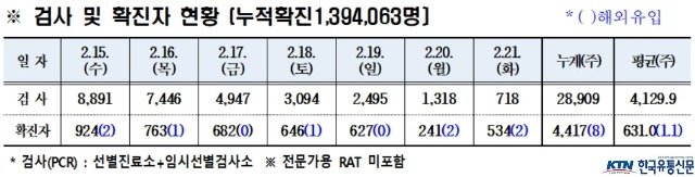 경북도내, 2023년 2월 21일 0시 기준 코로나19 확진자 534명(국내 532, 국외 2) 발생