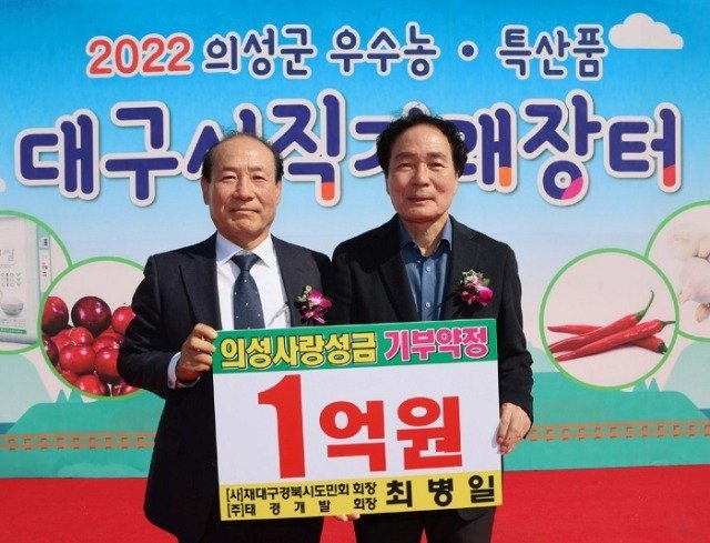 (전국= KTN) 김도형 기자= 의성군(군수 김주수)은 태경개발주식회사(회장 최병일)와 지난 2022 의성군 우수농·특산품 대구시 직거래장터에서 함께 기탁식을 열었고 그 이후 의성군 “함께모아 행복금고”를 통해 2023년 2월 1억원을 기부 약정했다고 밝혔다.