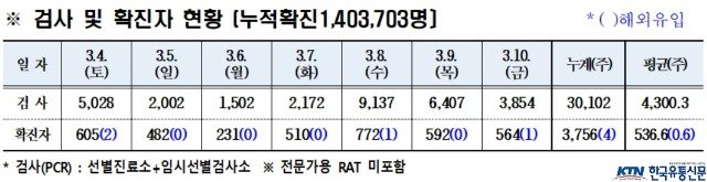 경북도내, 2023년 3월 10일 0시 기준 코로나19 확진자 564명(국내 563, 국외 1) 발생