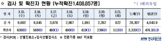 경북도내, 2023년 3월 21일 코로나19 확진자 511명(국내 511, 국외 0) 발생
