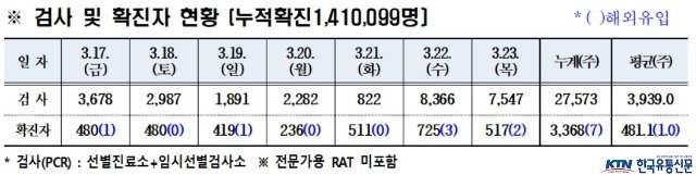 경북도내, 2023년 3월 23일 0시 기준 코로나19 확진자 517명(국내 515, 국외 2) 발생