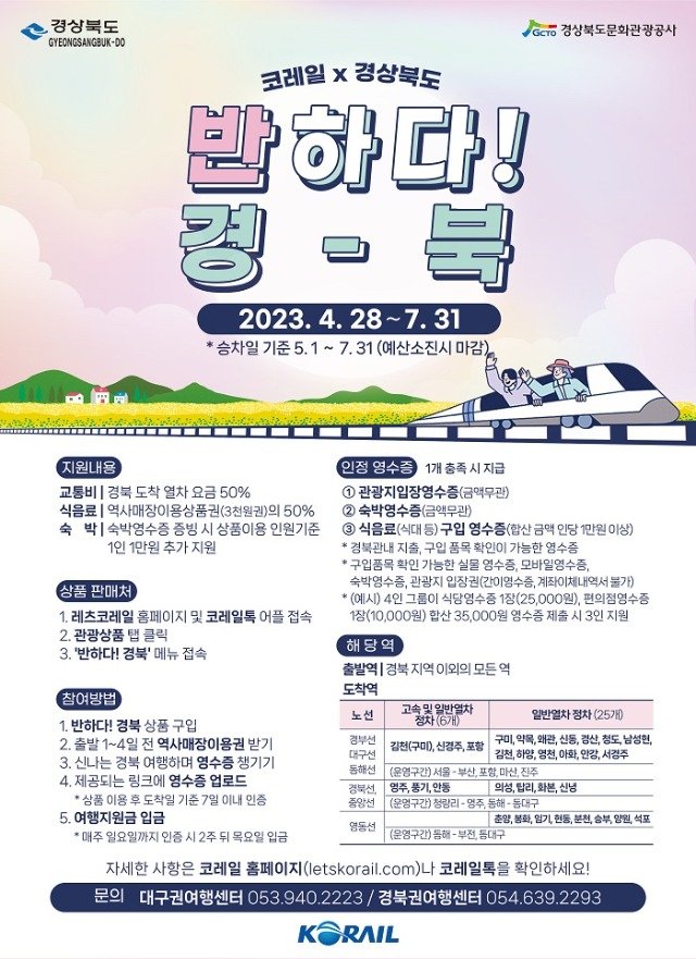 세부 내용은 코레일 대구권여행센터(053-940-2223)와 경북권여행센터(054-639-2293)로 문의하면 자세히 안내받을 수 있고, 코레일 홈페이지와 코레일톡에서도 직접 확인 가능하다.