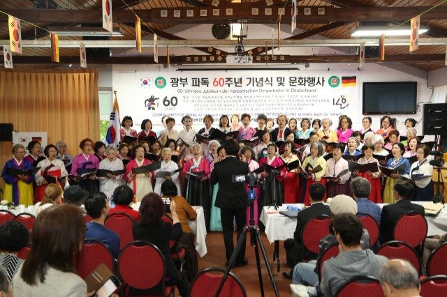 6일(현지시간) 오후, 옛 광업도시 에센에 위치한 파독광부기념회관에서는 다섯명의 파독 1진 원로회원을 비롯한 파독광부와 간호사, 교민 등 500여명이 모인가운데 파독광부 60주년 기념식이 열렸다.
