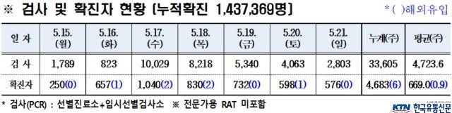 (전국= KTN) 김도형 기자=  경상북도에서는 5월 21(일) 0시 기준 22개 시·군(시 10, 군 12)에서  코로나19 확진자 국내감염 576명이 신규 발생하였다.