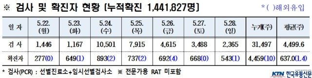 경북도내, 2023년 5월 28일 0시 기준 코로나19 확진자 543명(국내 542, 국외 1) 발생