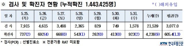 경북도내, 2023년 5월 30일 0시 기준 코로나19 확진자 923명(국내 921, 국외 2) 발생