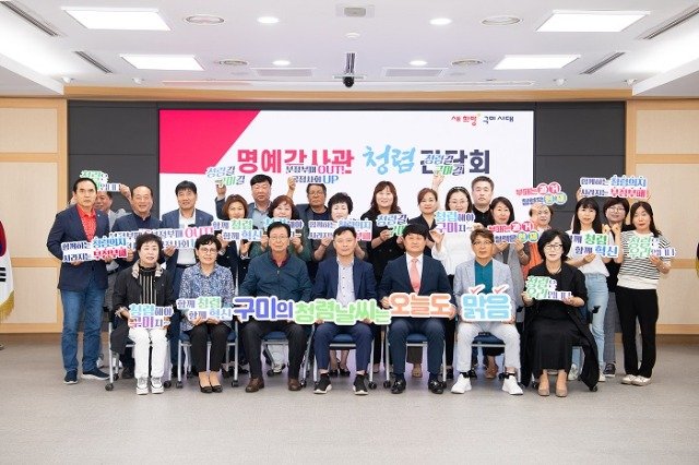(전국= KTN) 김도형 기자= 구미시는 30일 3층 상황실에서 명예감사관 30명과 함께「명예감사관 청렴간담회」를 열었다.
