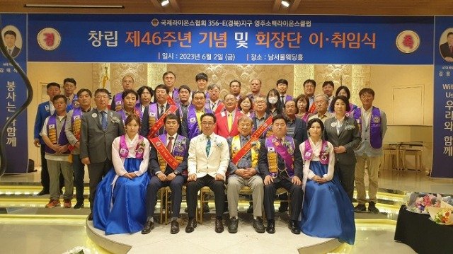(전국= KTN) 김도형 기자= 국제라이온스협회 356-E 경북지구 영주소백라이온스클럽이 지난 20일 오후 6시 영주남서울웨딩 2층 연회장에서 영주시장, 국회의원, 시의회의장, 경북지구 총재, 내외빈 및 클럽 관계자 등 300여명이 참석한 가운데 제46대·47대 회장 이취임식을 성황리에 가졌다.