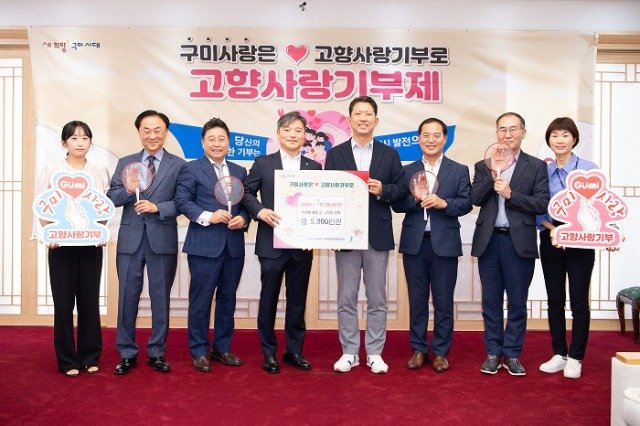 (전국= KTN) 김도형 기자= 구미시는 7일 지역대학 처음으로 구미대학교 이승환 총장과 교직원들이 십시일반 모은 고향사랑기부금 5천만 원을 기탁했다.