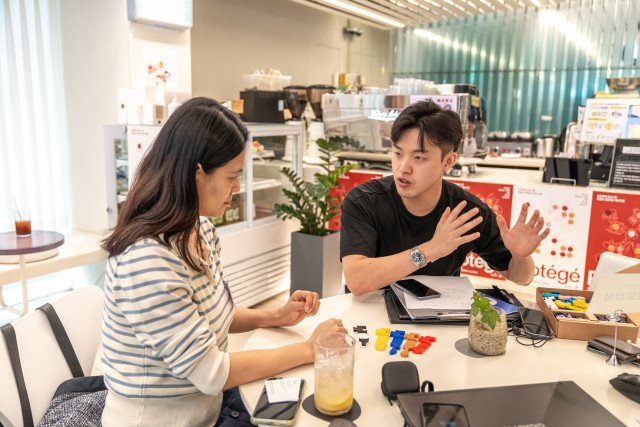 카페 블루웨일에서 진행된 ‘연결로 혁신하는 성장가들, 프로테제’에서 대화를 나누고 있는 ‘러플’ 이희은 대표와 ‘소플’ 이유정 대표