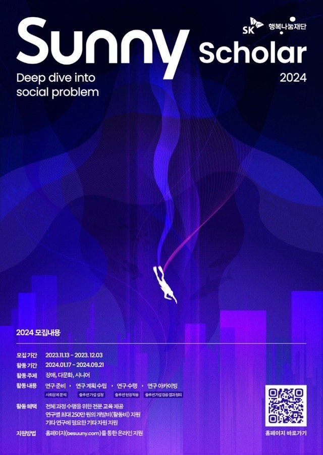 (전국= KTN) 김도형 기자= SK 사회공헌 전문 재단 행복나눔재단이 사회 문제 해결로 더 나은 세상을 만들어갈 ‘Sunny Scholar’ 대학생 활동가를 모집한다.