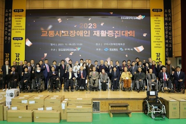 (전국= KTN) 김도형 기자= 2023 교통사고장애인 재활증진대회가 지난 8일 구미시장애인체육관에서 한국교통장애인경북협회(회장 김락환) 주관, 경상북도, 구미시 후원으로 지역 장애인 기관단체장 및 회원 등 1천여 명이 참석한 가운데 성황리에 개최되었다.