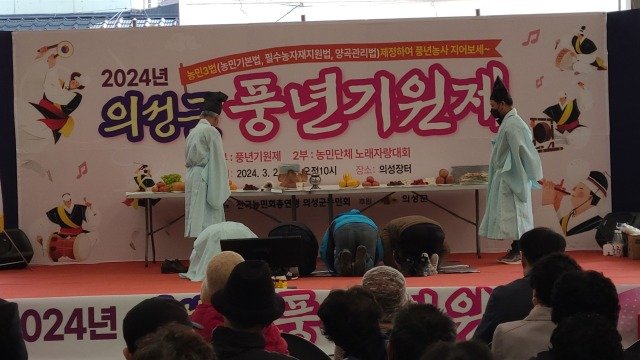 이날 농민 3법인 '농민기본법, 필수농자재 지원법, 양곡관리법' 제정을 기원하며 열린 의성군 풍년기원제는 풍물놀이 공연을 시작으로 풍년기원제, 농민단체 노래자랑 대회로 흥겨운 시간을 가졌다.