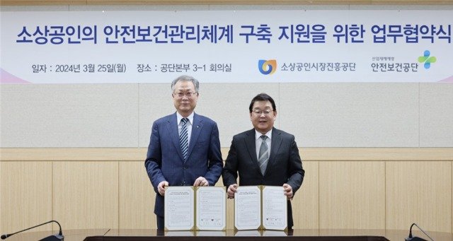 (전국= KTN) 김도형 기자= 소상공인시장진흥공단(이사장 박성효, 이하 소진공)은 25일(월) 오전, 대전본부에서 한국산업안전보건공단(이사장 안종주)와 업무협약을 체결했다.