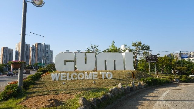 구미IC를 통과하면 넓이 12m, 높이 2.7m의 대형 ‘WELCOME TO GUMI’문자형 조형물이 방문을 환영하고, 구미시민운동장 이동 동선에 있는 입구 앞 회전교차로에 진입하면 트랙을 달리는 듯한 다이내믹한 육상경기 조형물을 만날 수 있다.
