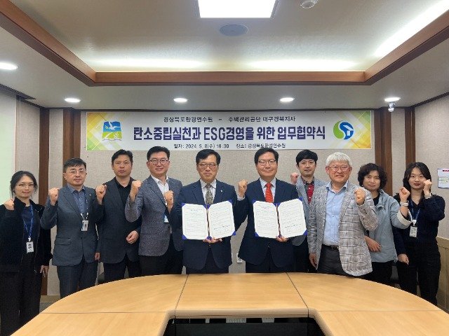 (전국= KTN)  김도형 기자= 경상북도환경연수원(원장: 최대진)과 주택관리공단 대구경북지사(지사장: 이은수)는 지난 5월8일(수) 온실가스 감축 활동을 위한 교육, 홍보, 캠페인 연계 및 도민을 위한 지속가능한 환경교육 활성화 기반 조성을 위한 양해각서를 체결하였다.