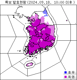 기상청, 9월 18일 특보 발효 현황