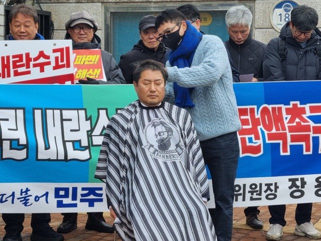 "내란수괴 윤석열 탄핵 인용 촉구" 포항검찰청 앞 삭발식 열려