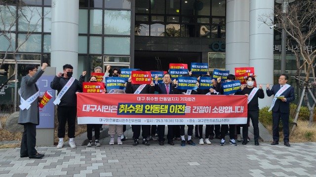 [한국유통신문= 김도형 기자] 3월 19일, 대구콘텐츠비즈니스센터 앞에서 대구맑은물범시민추진위원회는 대구 취수원 안동댐 이전을 지지하는 기자회견을 열었다. 이 자리에서 위원회는 대구 시민들의 안전하고 깨끗한 수돗물 공급을 위한 안동댐 이전의 필요성을 강조했다.