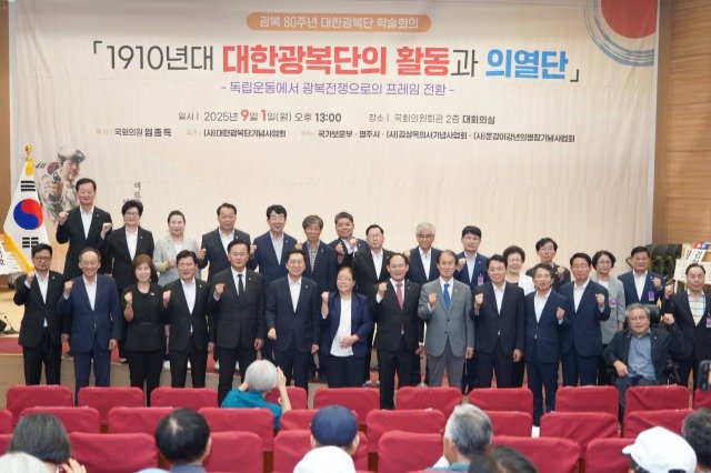 ‘광복 80주년 기념 대한광복단 학술회의’가 9월 1일 국회 의원회관 대회의실에서 열렸다. 이번 학술회의는 (사)대한광복단기념사업회(회장 정윤선)가 주관하고 임종득 국회의원이 주최했으며, 국가보훈부와 경북 영주시가 후원했다.