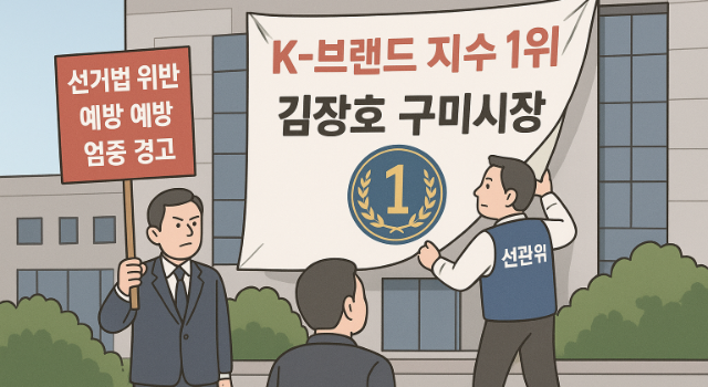 [한국유통신문= 김도형 기자] 김장호 구미시장의 아시아브랜드연구소 ‘K-브랜드지수 1위’ 축하 현수막이 지난 구미시체육회 및 지역 단체 주도로 다수 게시된데 이어 29일 구미시가 운영하는 시설에도 게시돼, 구미선거관리위원회(구미 선관위)로부터 즉각적인 철거 및 엄중 경고 조치를 받았다.