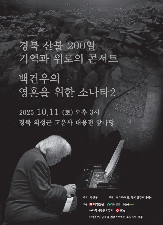 김주수 의성군수는 “이번 공연은 대형산불로 피해를 입은 지역 공동체의 상처를 음악으로 어루만지고자 마련된 자리”라며, “백건우 선생의 피아노 선율을 통해 군민 모두가 희망과 치유의 시간을 갖길 바란다”고 전했다.