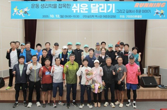 이번 강연에 참석한 구미마라톤클럽 회원들은 “과학적 근거와 실제 경험이 조화된 강의라 이해가 쉬웠다”며 “달리기에 대한 인식이 바뀌고 동기부여가 되었다”고 입을 모았다.