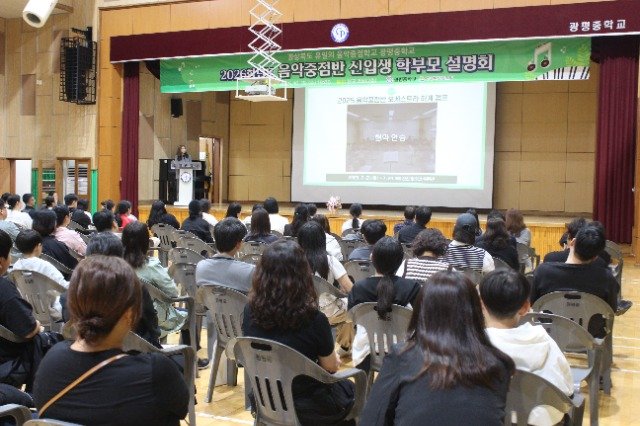 광평중학교(교장 김수철)가 2026학년도 신입생 모집을 위한 음악중점과정 입학설명회를 가졌다.(김선미 기자)
