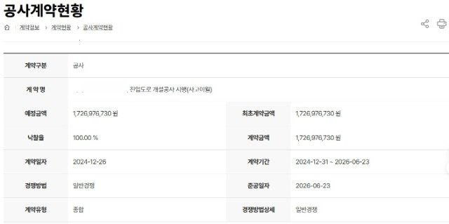 낙찰가는 예정가격 대비 하한율을 소수점 수준으로 초과하는 '절묘한 사정률'을 보였으며, 이는 형식적 경쟁입찰임에도 특정 업체에 유리한 결과가 반복된 양상이다.